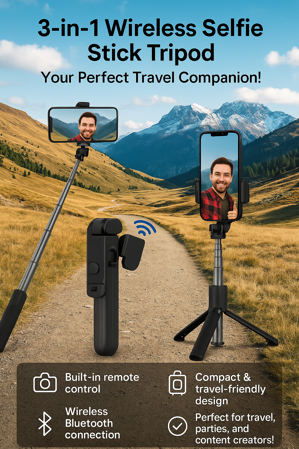 Take your travel photos and videos to the next level with this compact and smart 3-in-1 selfie stick tripod!